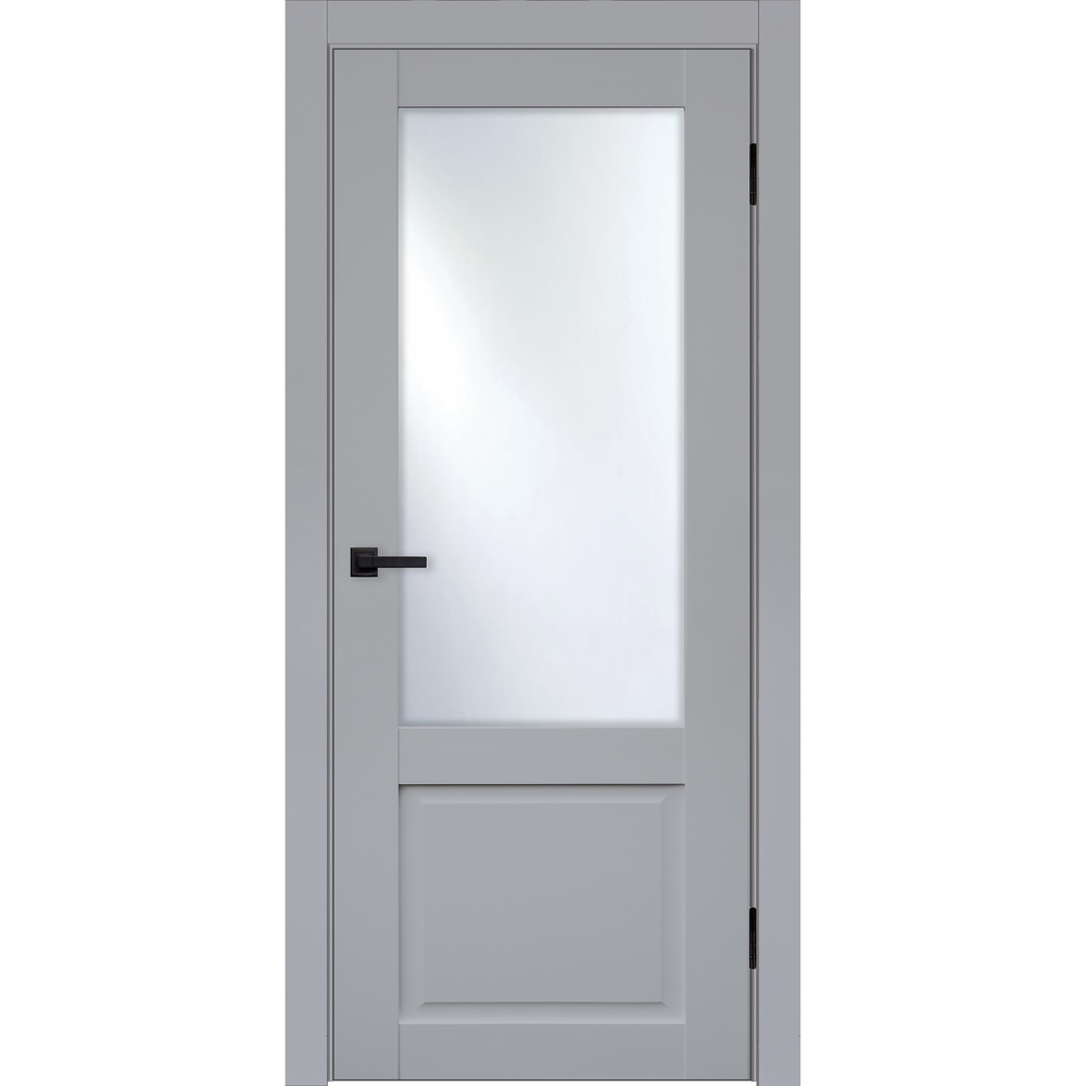 Межкомнатная дверь эмалит Классик 2 светло-серая остеклённая