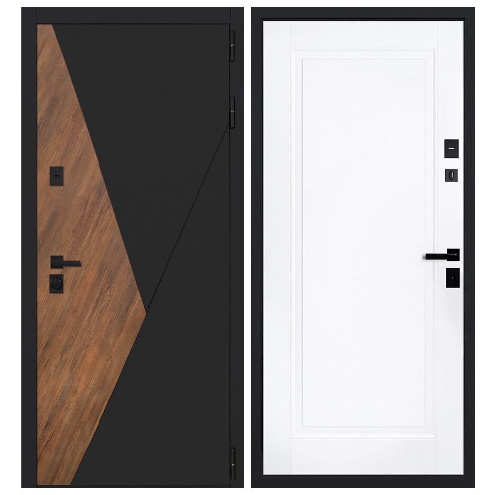 Входная дверь Плата шагрень чёрная дуб старый ПВХ белый матовый