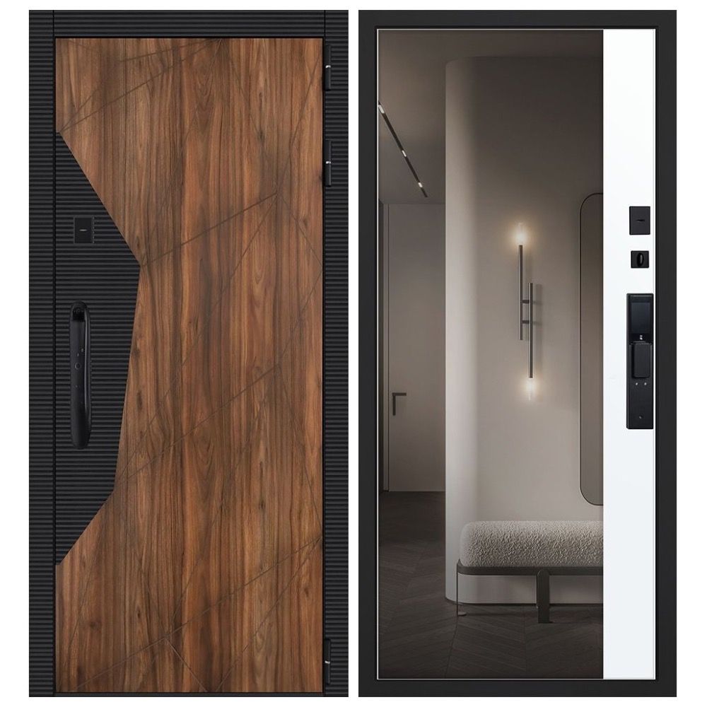 Входная дверь Сапсан шагрень чёрная дуб старый ПВХ белый матовый с зеркалом и электронным замком