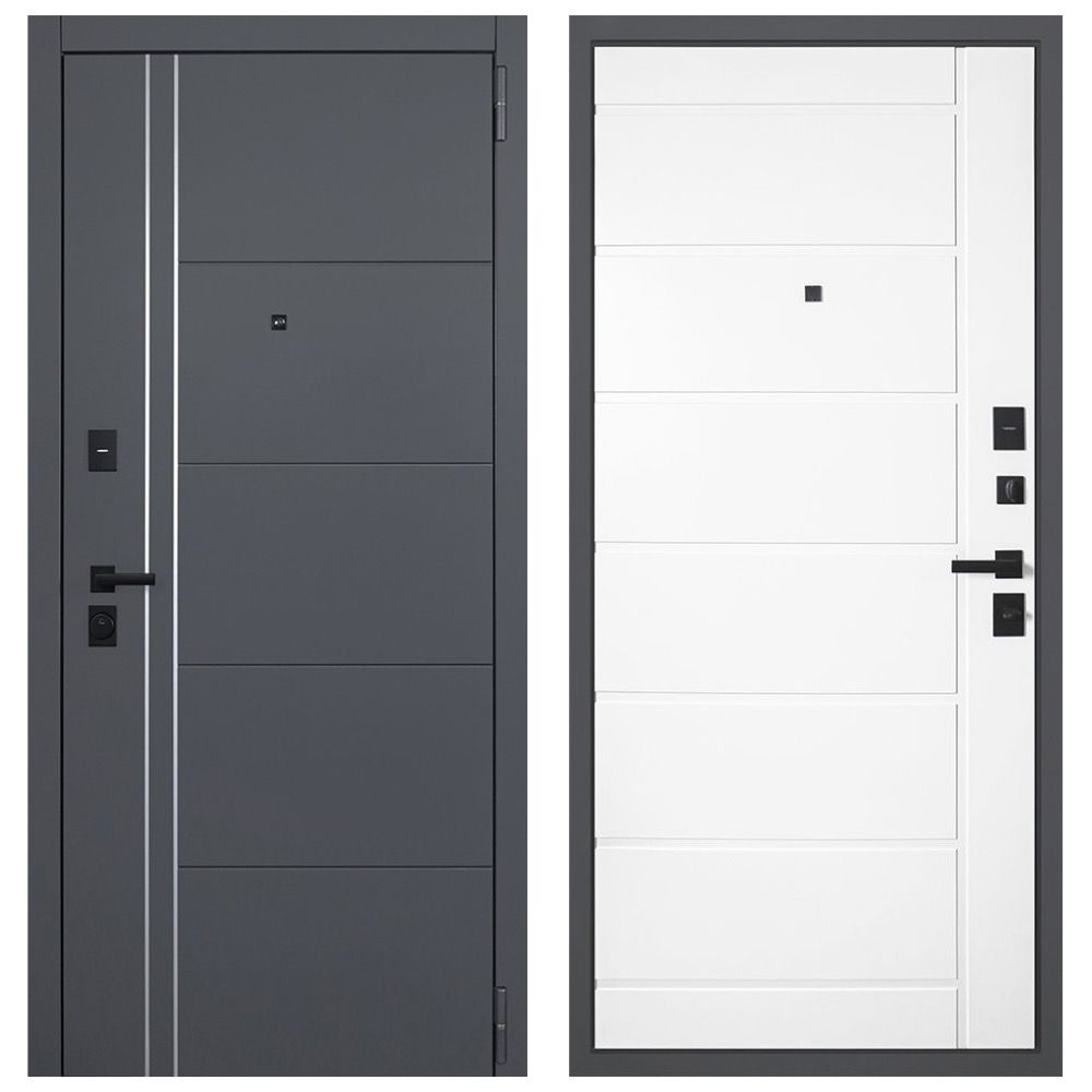 Входная дверь Vegas муар серый ПВХ белый матовый